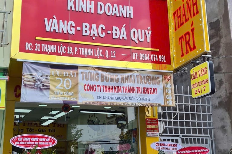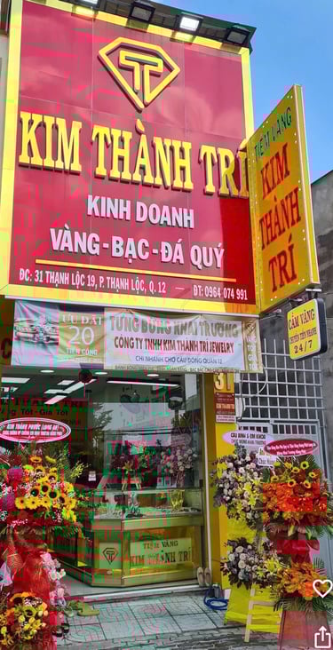 Vị trí kinh doanh của Kim Thành Trí rất dễ tìm, không gian sang trọng và được bố trí chuyên nghiệp. Bước vào tiệm là cảm nhận ngay sự uy tín và đẳng cấp của một thương hiệu vàng lâu năm.